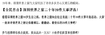 2、发起评选活动,让粉丝意识到:“哇,世界之窗已经陪伴 我们20年了!