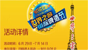 3、线上线下结合:啤酒节现场微信抽奖,送门票、酒店住宿,High爆全场,吸引28000人参与。